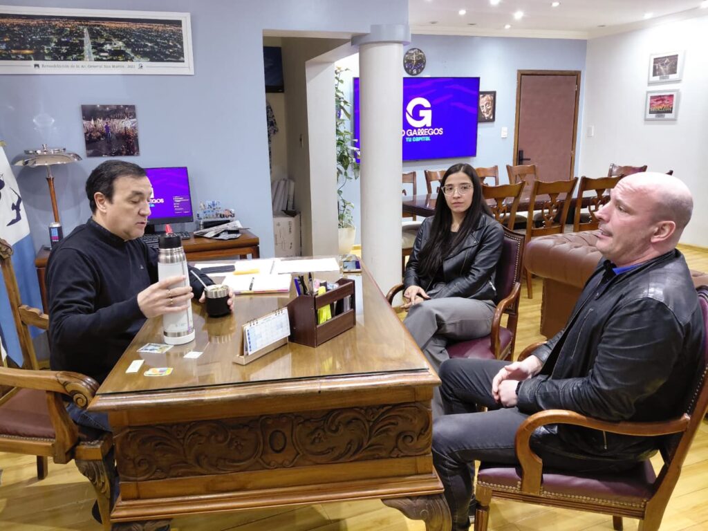 El intendente de Río Gallegos, Pablo Grasso, recibió en su despacho a Franco Mascheroni, recientemente electo como Secretario General de la Asociación Gremial de Empleados Judiciales de Santa Cruz (AGEJUS) para el período 2025-2028.