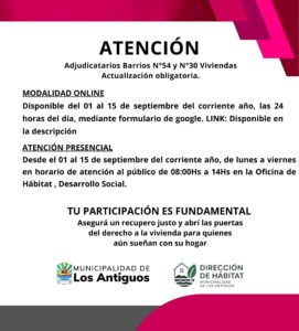 La municipalidad de Los Antiguos, a través del área de protección civil, informa que se está llevando...