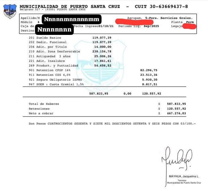 El reclamo salarial sigue siendo otro eje del conflicto. En Puerto Santa Cruz, un módulo 4 —el más bajo— cobra 380 mil pesos, cifra que no alcanza ni para cubrir un alquiler o los servicios básicos. “Hay compañeros sin luz, sin gas, con deudas impagables y familias con hambre. Somos indigentes en un pueblo olvidado por el gobernador y el intendente”, resumieron las trabajadoras.